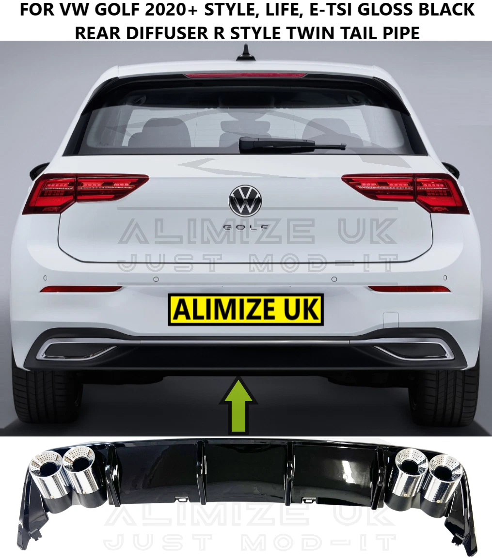 For Vw Golf Mk8 20 Style Life E Tsi Rear Bumper Lip Diffuser Gloss Black R Look Ebay